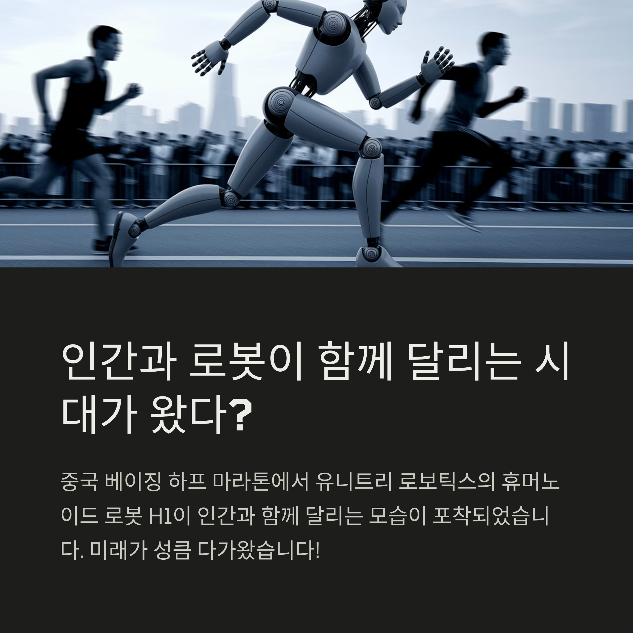 최근 중국 베이징에서 열린 하프 마라톤 대회 현장에서 놀라운 광경이 펼쳐졌습니다. 수많은 참가자들 사이로 사람과 흡사한 형태의 로봇 여러 대가 함께 달리고 있었던 것입니다! 이 로봇들은 바로 중국 로봇 기업 유니트리 로보틱스(Unitree Robotics)가 개발한 휴머노이드 로봇 H1이었습니다.