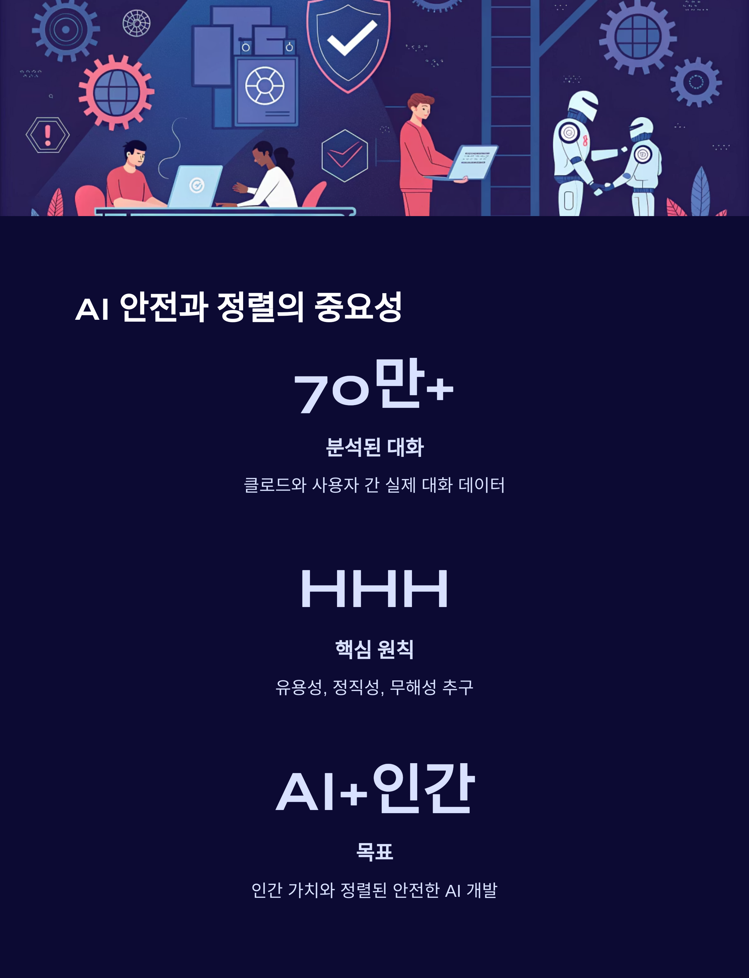 앤트로픽의 이번 대규모 대화 분석 연구는 AI 안전(AI Safety) 및 AI 정렬(AI Alignment) 분야에 중요한 기여를 합니다. AI 안전은 AI 시스템이 의도치 않게 인간에게 해를 끼치거나 통제 불능 상태가 되는 것을 방지하는 연구 분야이며, AI 정렬은 AI 시스템이 인간의 의도, 가치, 목표와 일치하도록 설계하고 훈련하는 것을 목표로 합니다.