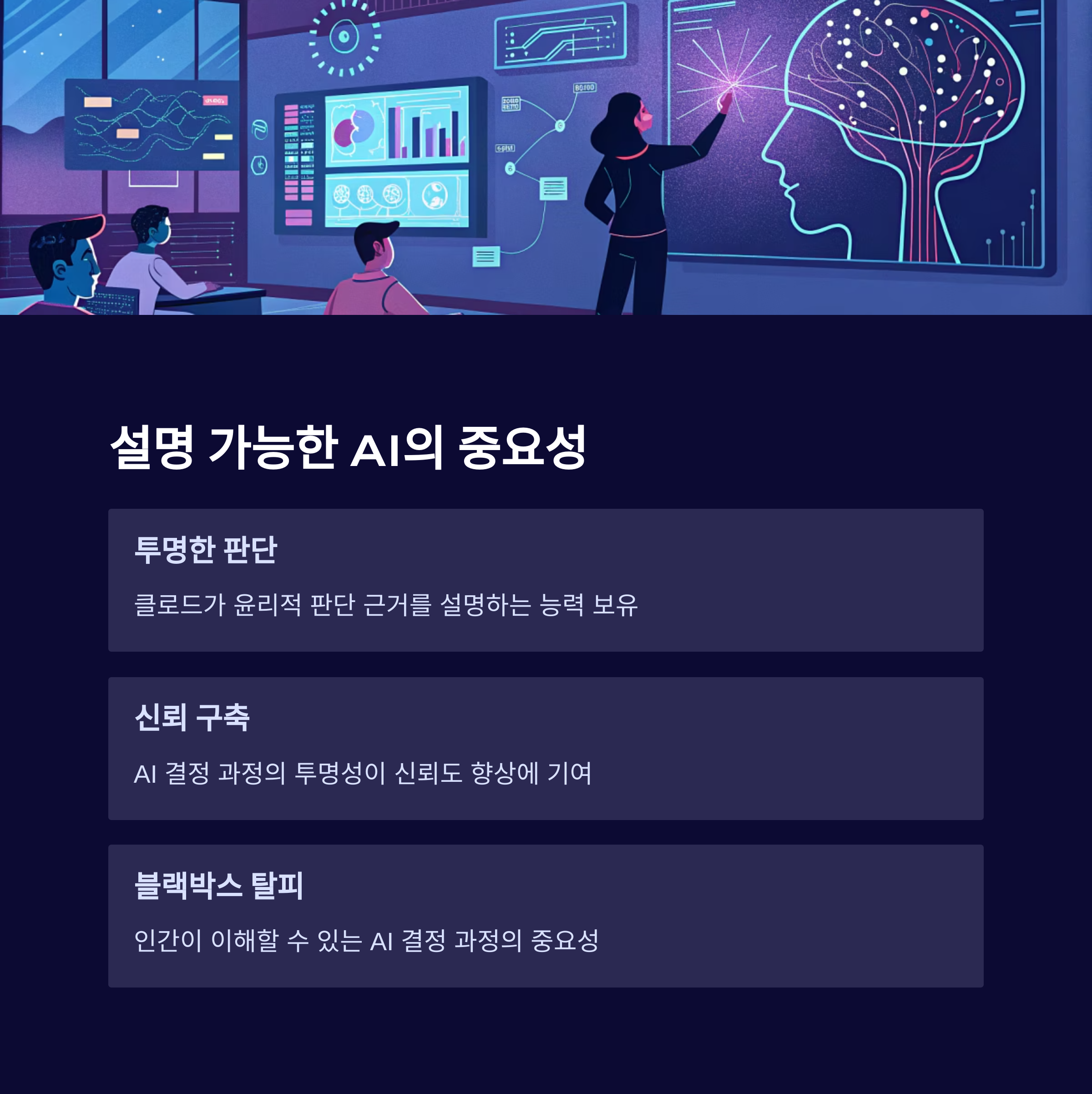 클로드가 자신의 윤리적 추론 과정을 설명할 수 있다는 사실은, 비록 완벽하지는 않더라도 AI가 점차 '블랙박스(Black Box)'에서 벗어나 인간과 소통하고 이해될 수 있는 방향으로 발전하고 있음을 보여주는 긍정적인 신호입니다 .