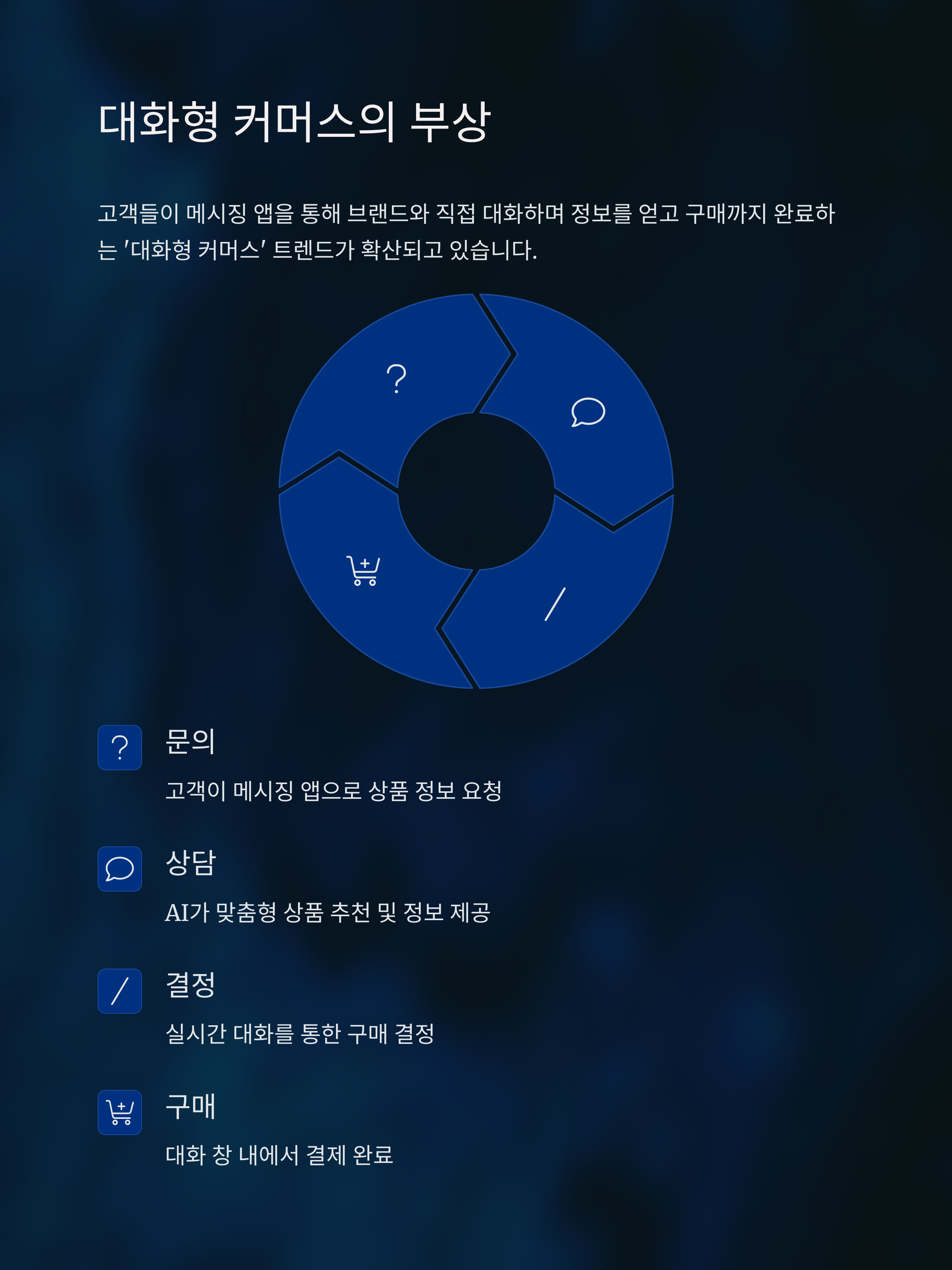 - 단순 문의 처리 넘어 복잡한 상담 및 구매 유도 지원