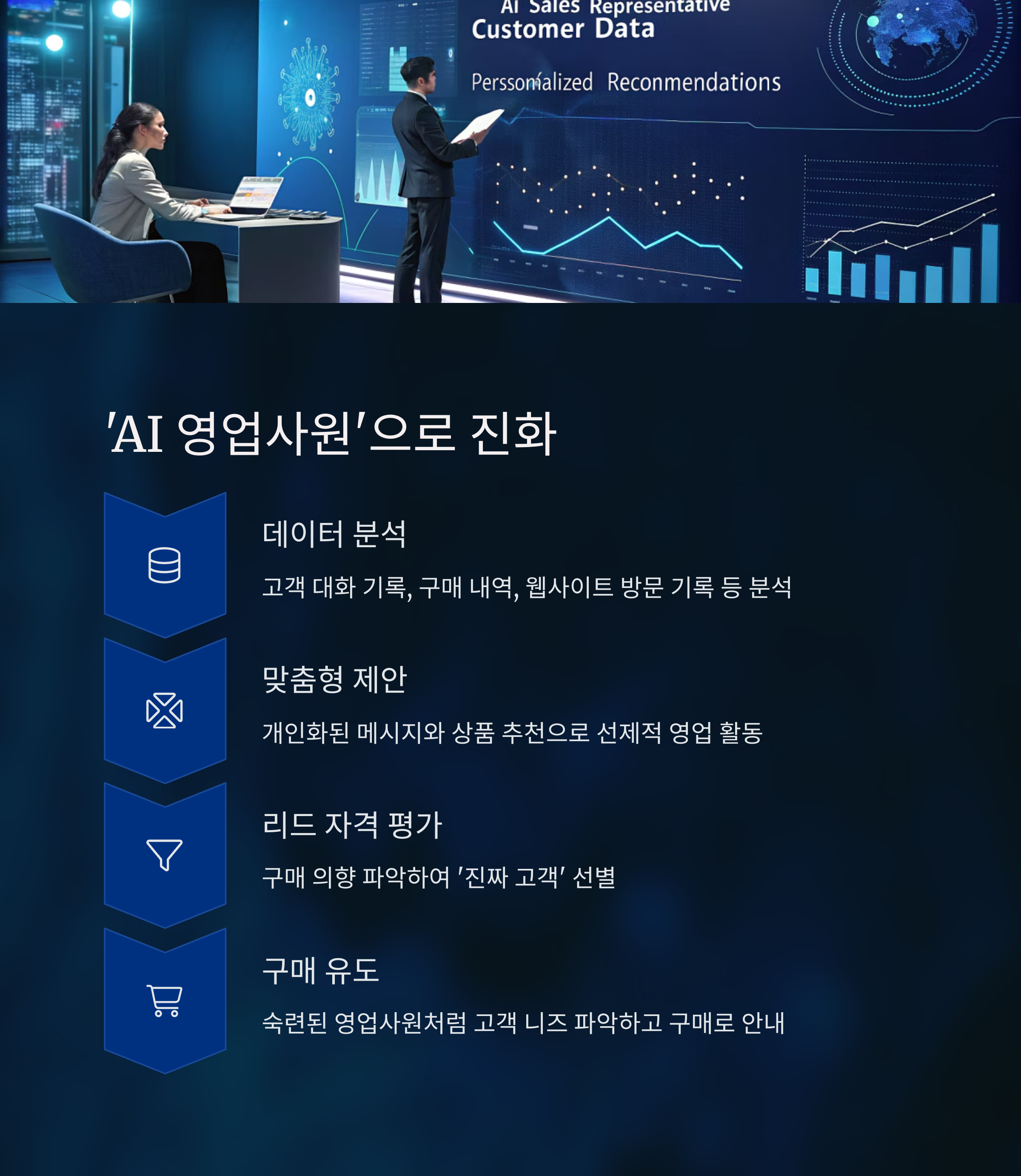 단순 자동 응답을 넘어, 고객 데이터를 기반으로 개인화된 경험을 제공하고 잠재 고객 발굴부터 구매 유도까지 지원하는 'AI 영업사원'으로의 진화는 특히 중소기업(SMB)에게 새로운 성장 기회를 제공할 것입니다.