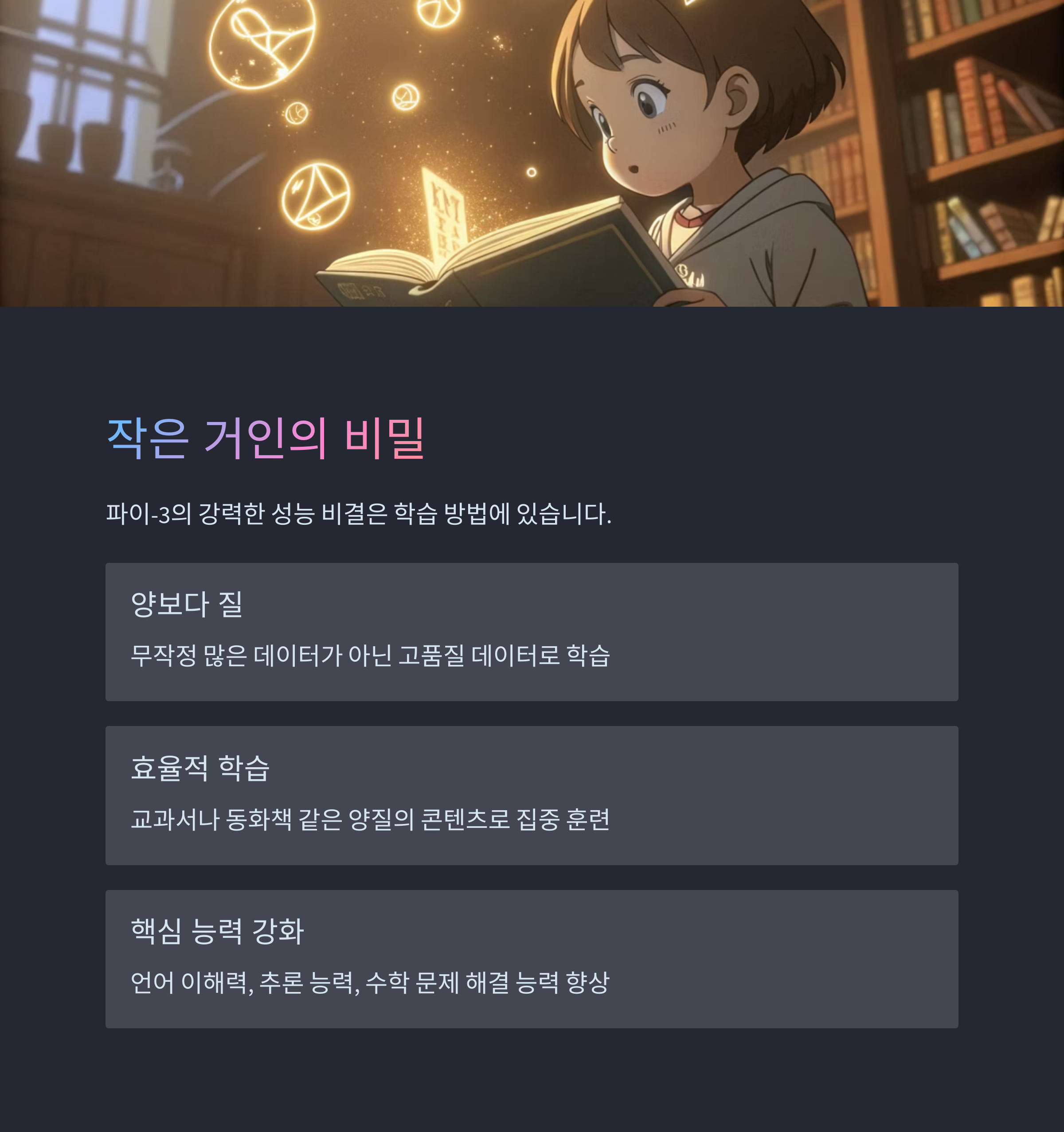 마이크로소프트가 공개한 파이-3는 크기는 작지만 강력한 성능을 내는 새로운 인공지능 모델입니다.
